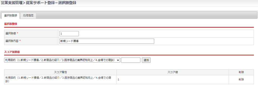 あらかじめ提案サポートのシナリオに紐づける「スコア」を設定します。