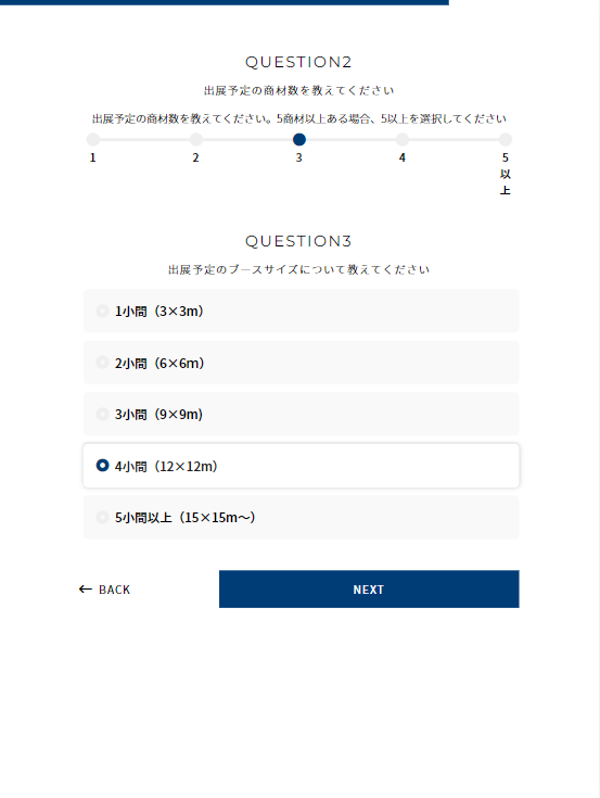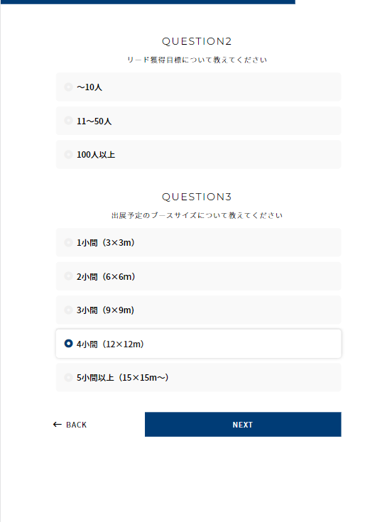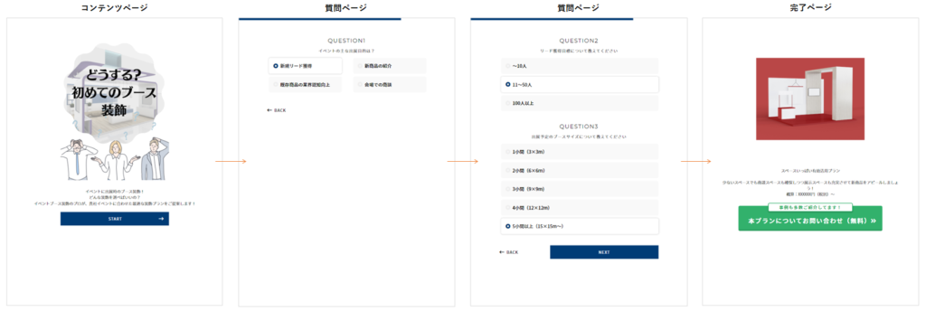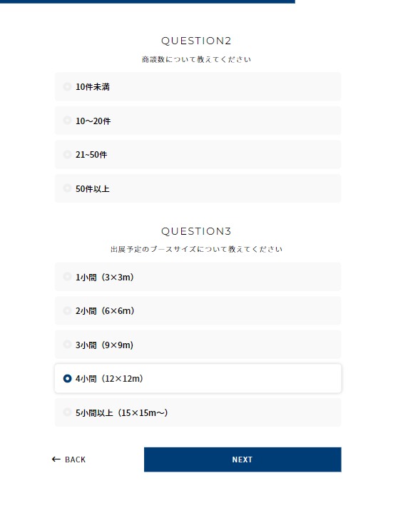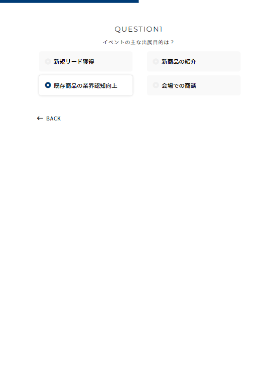 ※スコア値=4のとき(QUESTION1で「会場での商談」を選択した場合)に表示される完了ページのプレビュー画面です。
