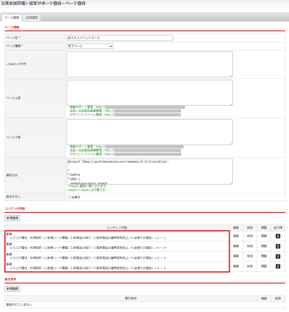 ※「コンテンツ内容」と「表示条件」は、ページ情報登録後に設定ができるようになります。