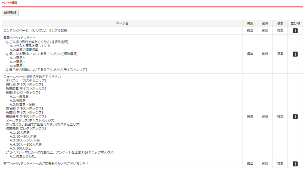 | ページ名 | クリックすると該当ページのプレビュー画面を確認することができます。 |