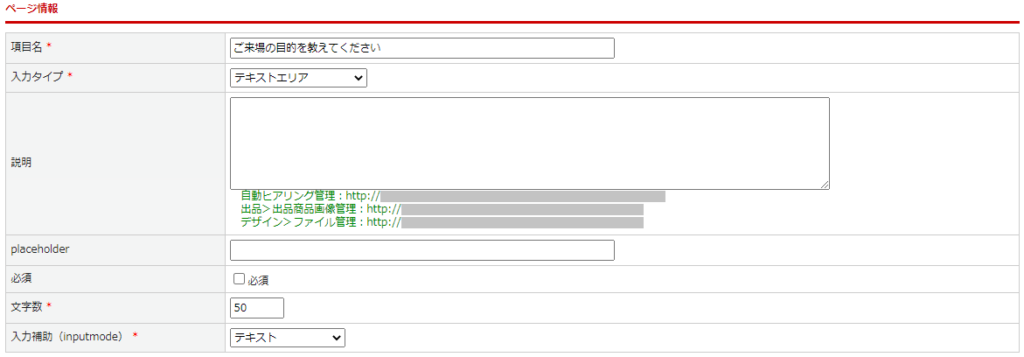 入力タイプ:[テキストエリア]