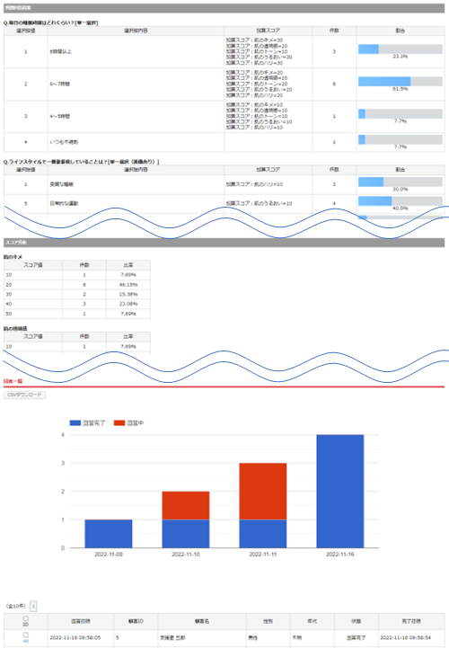 ■回答項目ごとの選択数や割合をレポート形式で確認できます。