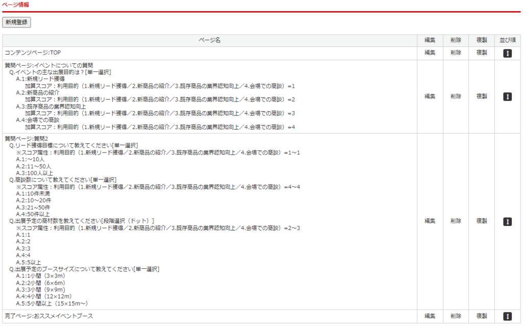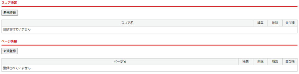 基本となるテーマカラーの設定などを登録後、スコア、ページ情報の登録を行います。