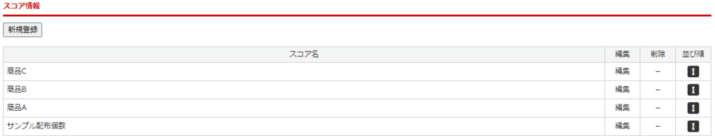 【新規登録】ボタンから提案サポートに紐づける「スコア」を登録します。