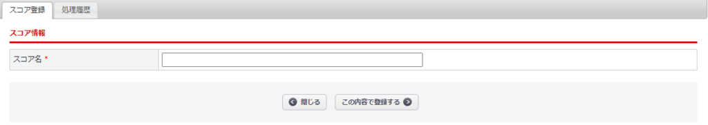 スコア情報の【新規登録】ボタンクリック後に表示されるスコア登録画面