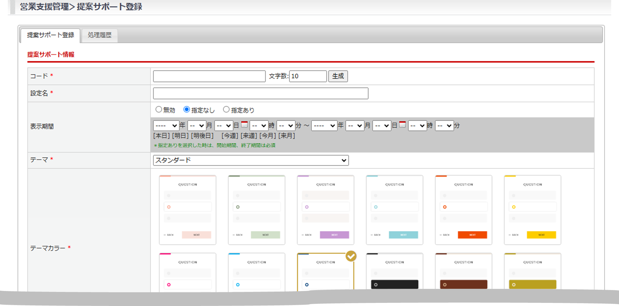 画面上部の新規登録をクリックすると、提案サポート登録画面へと遷移します。