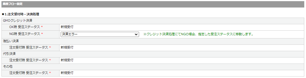 GMOクレジット決済決済の与信取得後、結果別に受注ステータスを振り分けることが可能です。