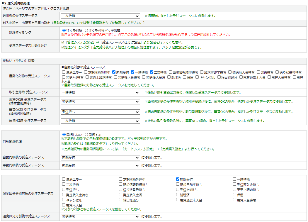 ※注文受付後バッチのご利用にはネットショップ支援室にて設定変更が必要です。