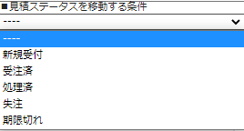 受注データ作成後の見積ステータス 見積から受注データ作成後の移動先見積ステータスを指定します。