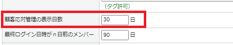 左記日数の顧客応対状況(直近n日間)の表示日数の設定です。