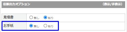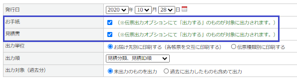 初期値は[出力なし]です。(受注登録画面にて変更が可能です)
