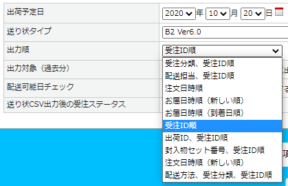 伝票番号の必須登録受注>お荷物伝票番号CSV取込で伝票番号が任意か必須かを選択できます。