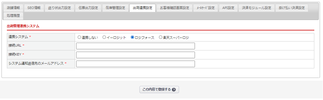 | 連携システム | ”ロジフォース”を選択します。 |