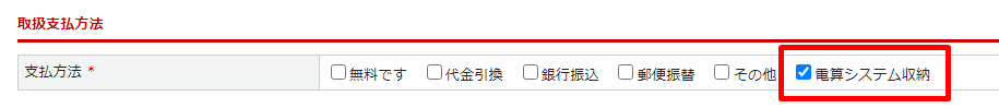 利用する配送方法の取扱支払方法欄にチェックを入れてください。詳細は<こちら>をご確認ください。