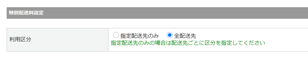 上記の欄を入力後、【特別配送料入力欄生成】ボタンをクリックすると