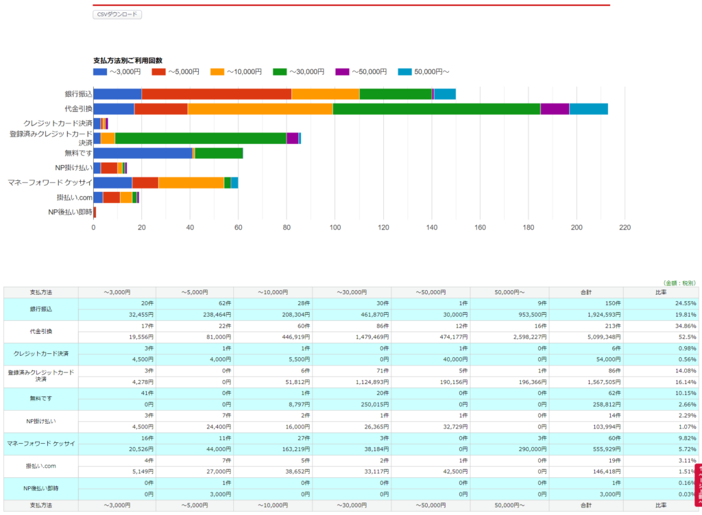 | ~10,000円 | 支払金額10,000円までの件数と金額 |