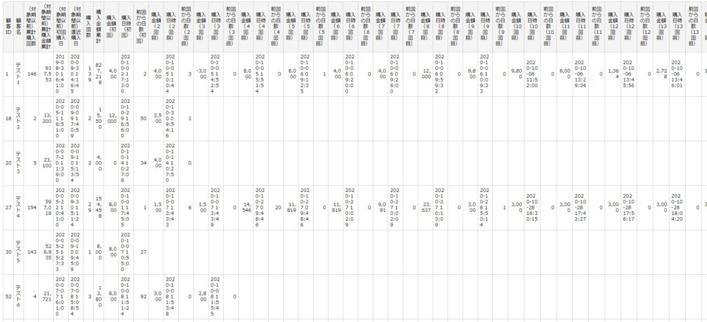 | 購入金額(25回目以降) | 購入回数25回目以降からリピート集計期間終了日までの購入金額合計 |