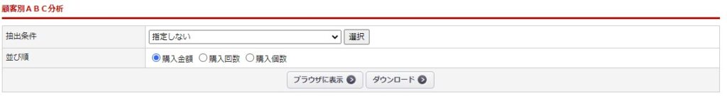 | 出力内容 | 顧客別集計かリピート率集計を指定 |