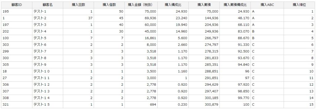 | 購入累積 | 購入金額を顧客毎に累積 |