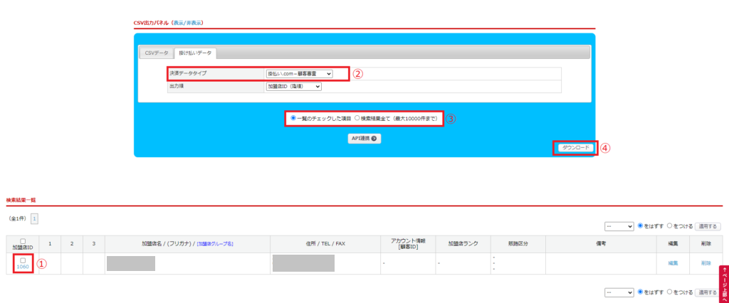 5. 審査完了後、掛払い.comの管理画面から審査結果CSVをダウンロードし、
