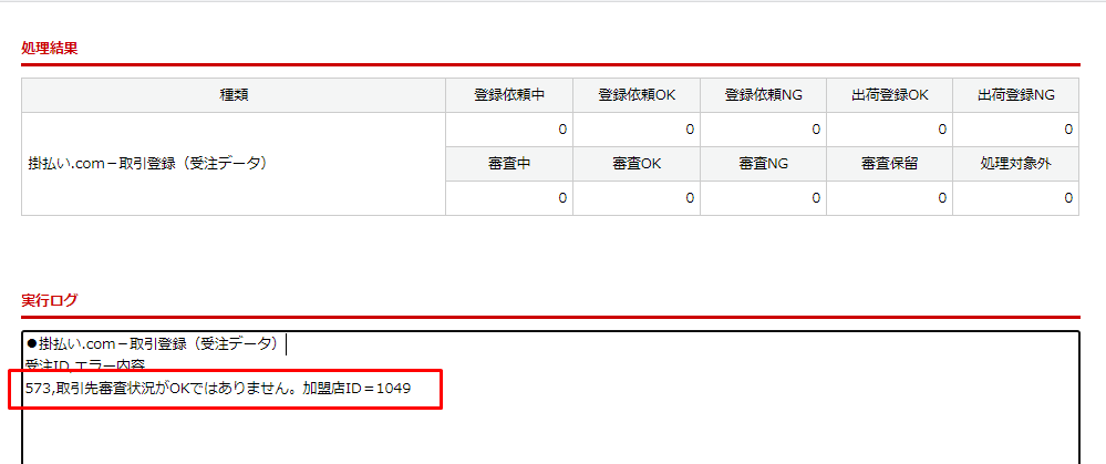 掛払い決済審査結果CSV取込