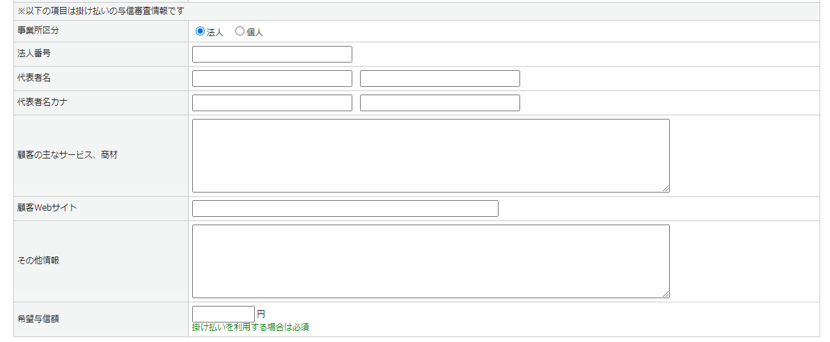 枠金額希望与信額を受けて、掛払い側が判断した金額が顧客審査後に表示されます。