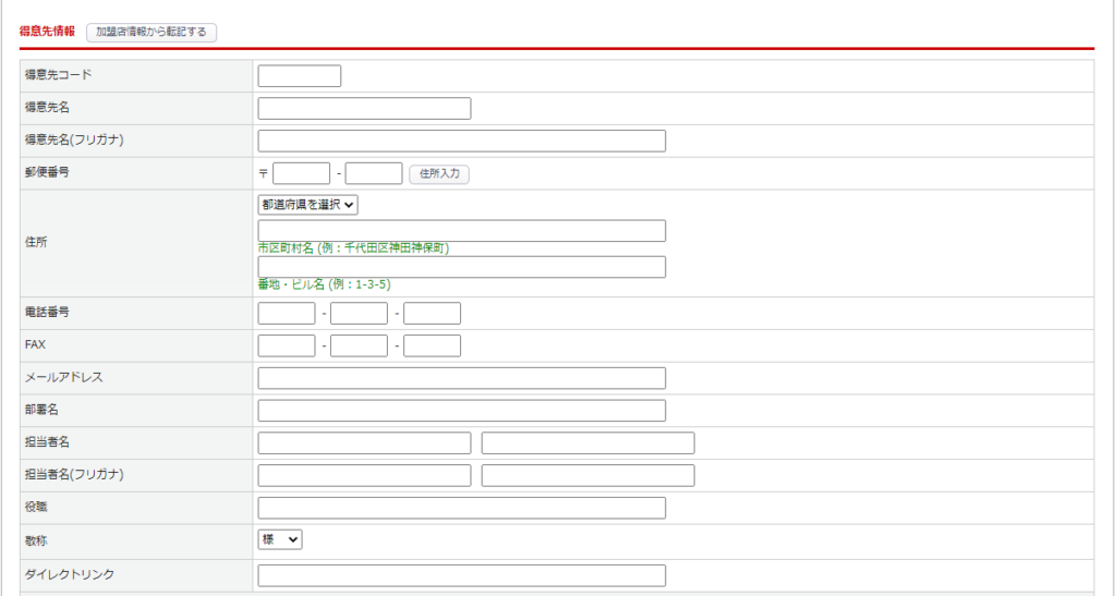加盟店>加盟店管理>加盟店の新規登録>「得意先情報」タブ内