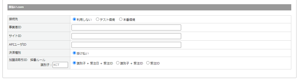 事業者ID 掛払い.comの本番環境の事業者IDを入力します。(数字7桁)