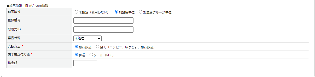 請求書区分請求区分を「加盟店単位」または「加盟店グループ単位」から選択できます。