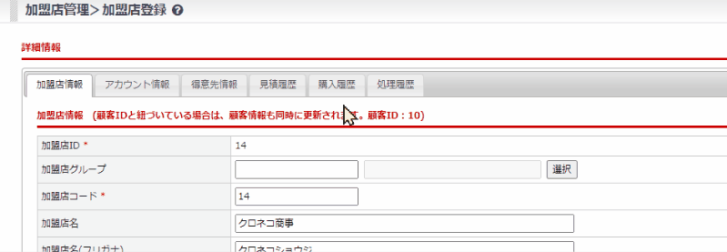加盟店画面>[得意先情報]タブ