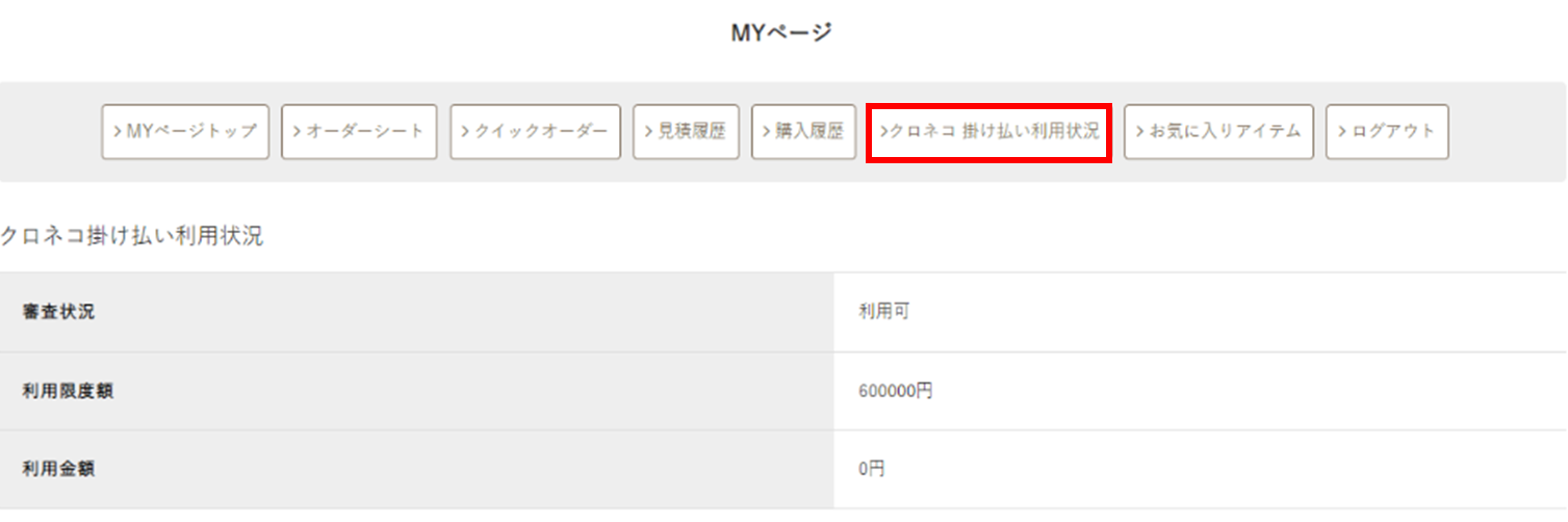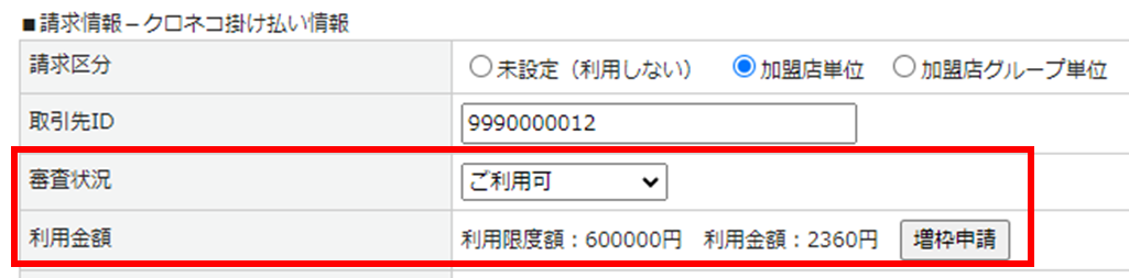 <クロネコ掛け払い>利用状況が「利用可」である