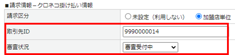 取引先(会員)ID * ■請求情報-クロネコ掛け払い情報 >「取引先ID」
