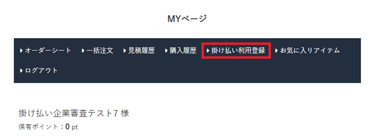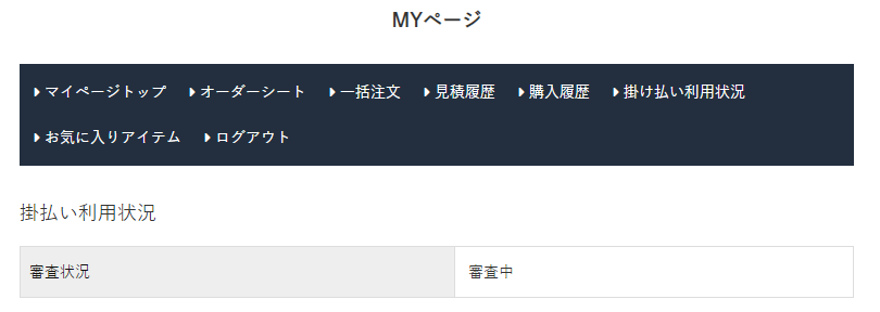 MYページの「掛け払い利用登録」から事前審査を依頼することができます。