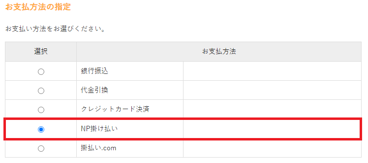 NP掛け払いのお支払方法のメッセージを個別に設定することができます。