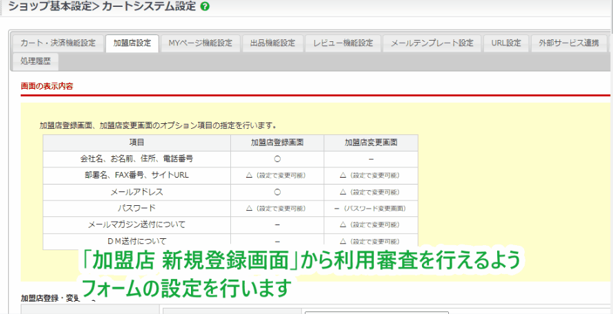 加盟店登録時にチェックを入れると、事前審査が行われます。