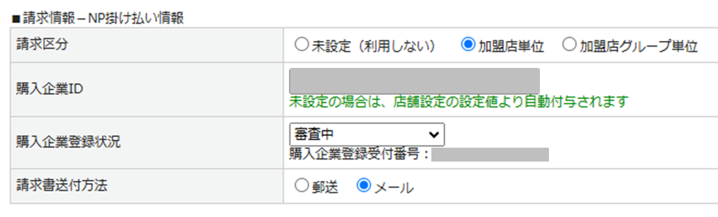 「購入企業ID」には、NP掛け払いに登録されているIDを入力します。
