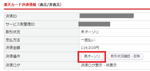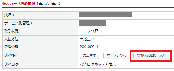 楽天カード側の決済状況がスマレジEC・リピートに反映されていない場合は受注登録画面の【取引状態確認・反映】ボタンをお試しください。