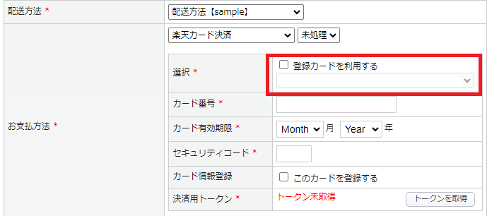 ※別カードを選択する場合、オーソリを実行して登録するボタンから登録を実行してください。