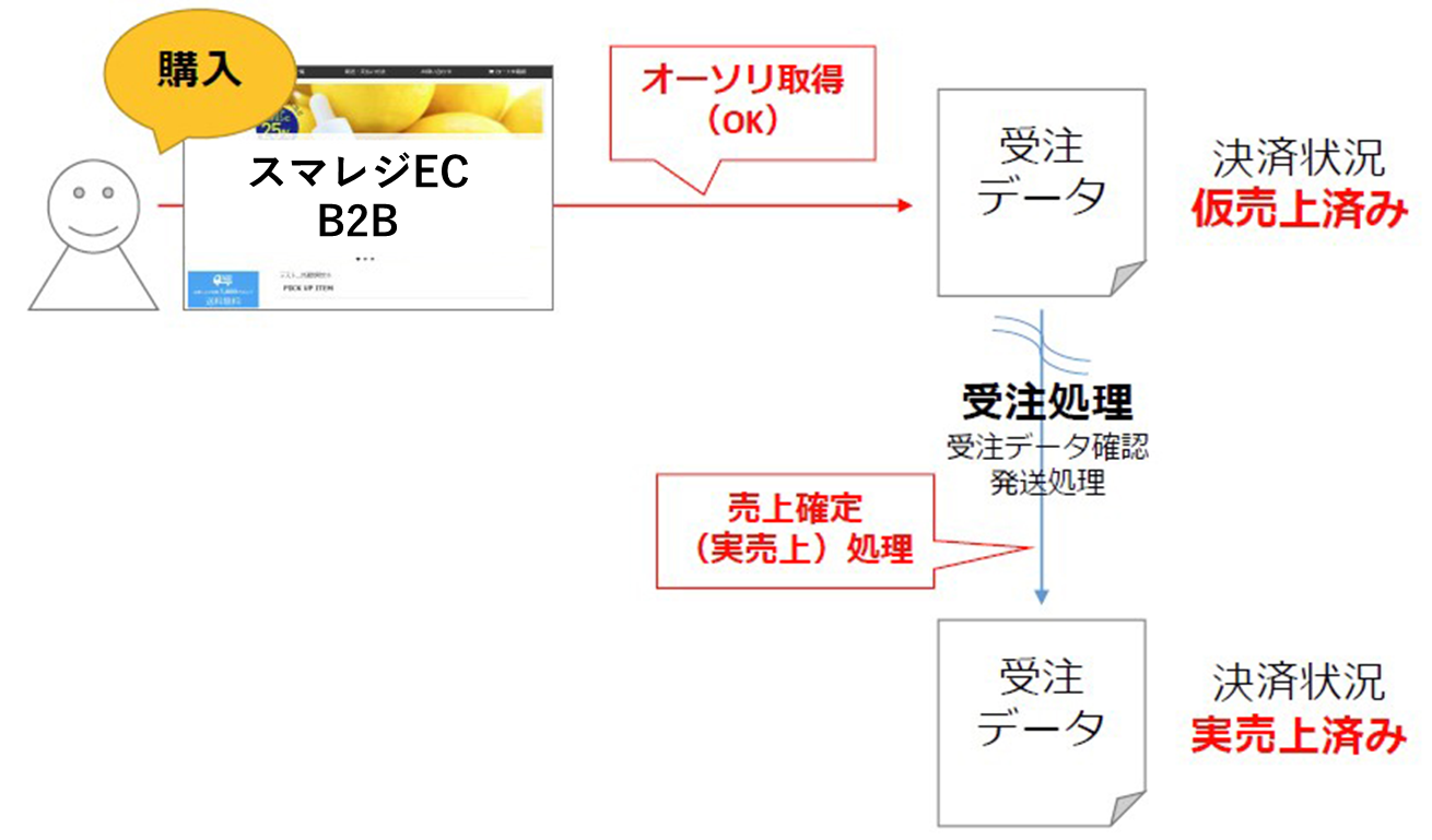 - 発送完了後、売上確定(実売上)処理を行っていただく必要があります。(手動または自動)
