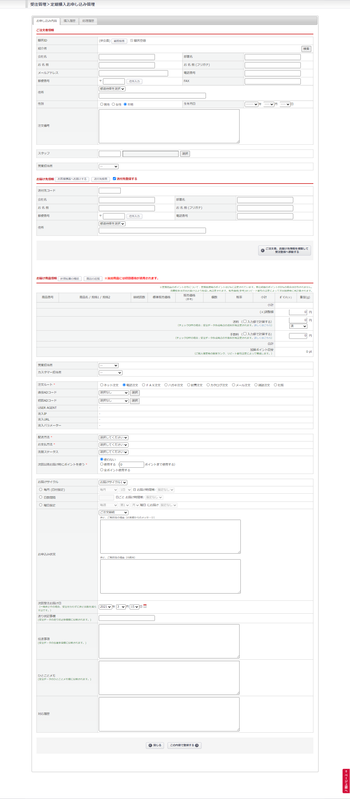 1.受注>定期購入お申込み登録 から定期データを作成する