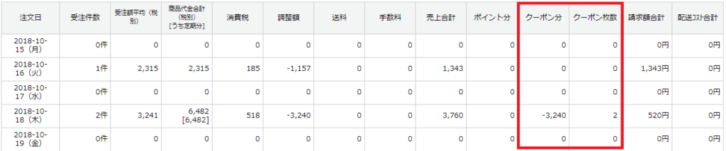 集計結果の「クーポン分」から確認