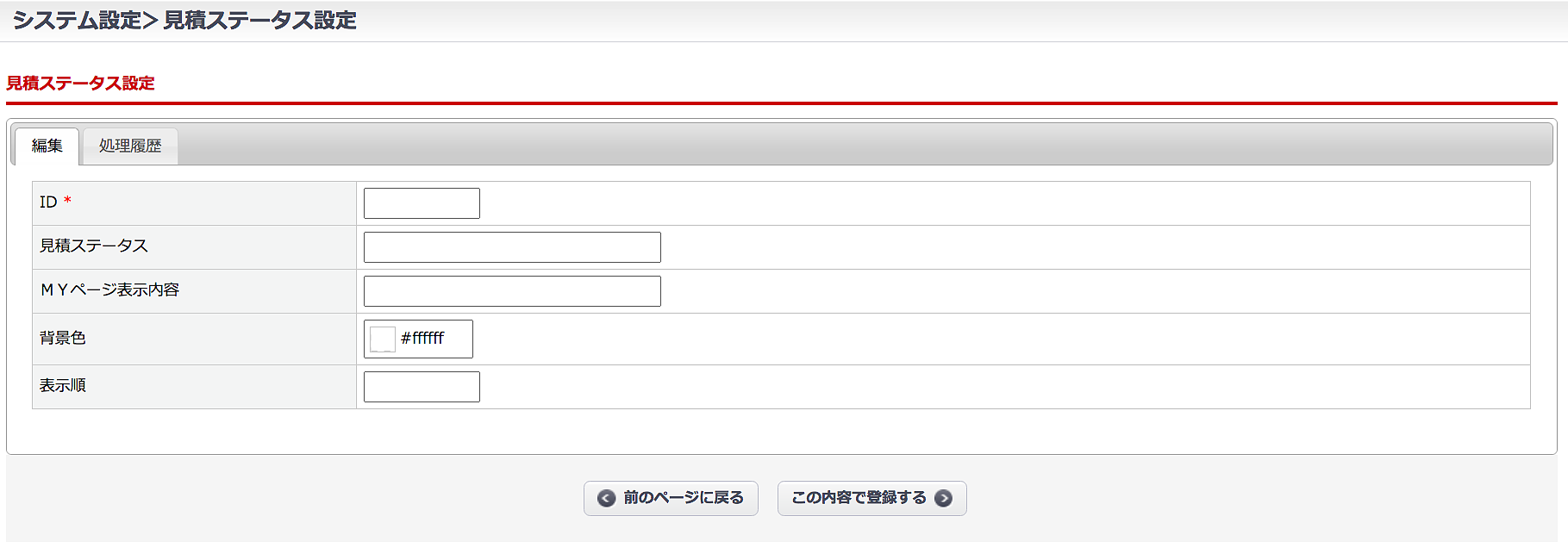 | 背景色 | 見積ステータスに応じて背景色の設定ができます。 16進数で表される「カラーコード」から色を選択してください。 |
