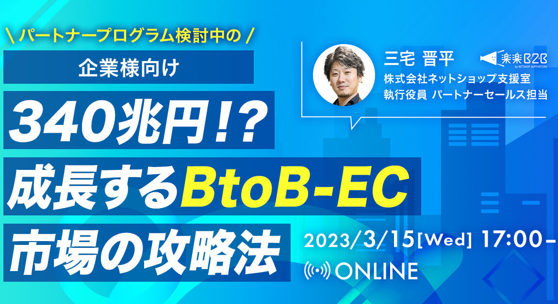 | タイトル | 【パートナープログラム検討中の企業様向け】 340兆円!?成長するBtoB-EC市場の攻略法 |