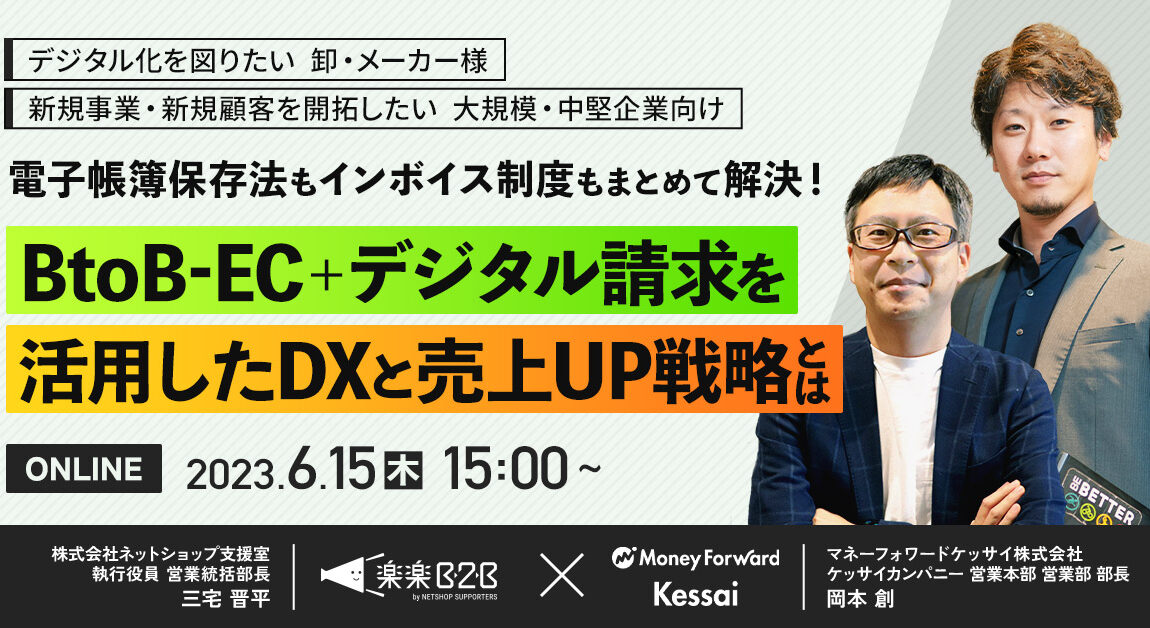 | タイトル | デジタル化を図りたい 卸・メーカー 新規事業・新規顧客を開拓したい 大規模・中堅企業様向け 「電子帳簿保存法もインボイス制度もまとめて解決! BtoB-EC+デジタル請求を活用したDXと売上UP戦略とは」 |