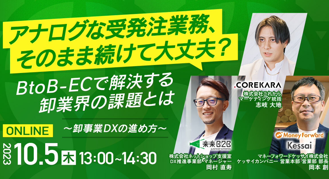 | タイトル | 【アナログな受発注業務、そのまま続けて大丈夫?】~卸事業DXの進め方~BtoB-ECで解決する卸業界の課題とは? |