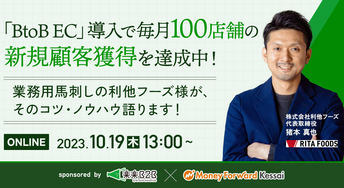 | 名称 | 「BtoB EC」導入で毎月100店舗の新規顧客獲得を達成中! 業務用馬刺しの利他フーズ様が、そのコツ・ノウハウ語ります! |