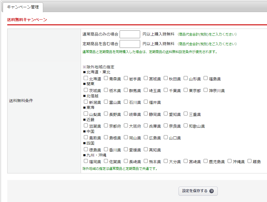 一定期間 送料無料にするといったキャンペーンの設定が行えます。