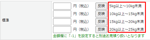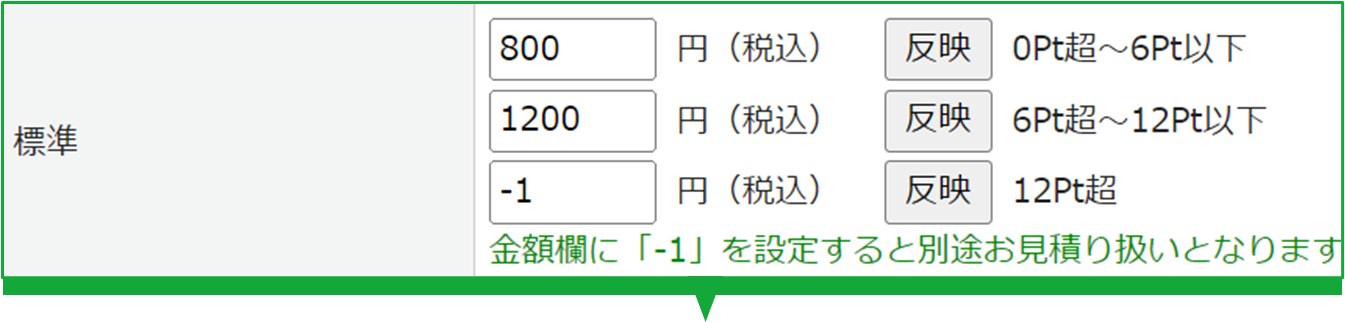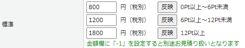 下記イメージの通り、【標準】欄に入力した配送料は、全都道府県に一括反映可能です。
