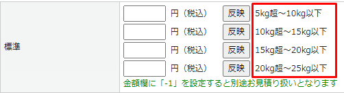 在庫・商品規格ごとに、特別配送料を登録してください。