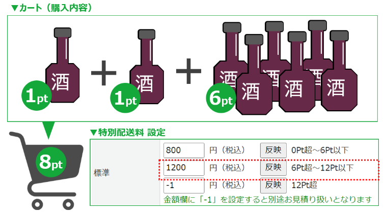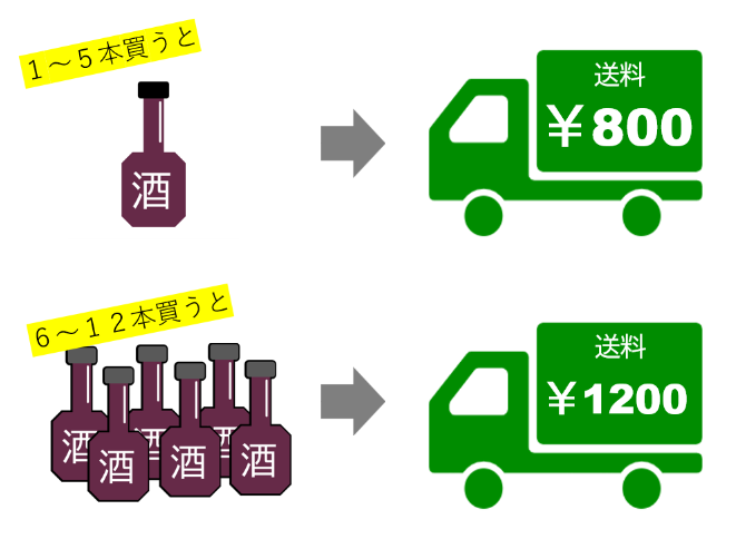 以下の画像はあくまで一例ですが、購入点数といった任意の単位に応じて、送料を変動させることが可能です。